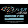 Vous cherchez le cadeau parfait pour les créatifs et les amateurs de bricolage ? Offrez la magie de la mosaïque avec notre bon cadeau de 50 euros ! Ce bon cadeau est idéal pour les amis, la famille ou les collègues qui aiment créer leurs propres œuvres d'art ou embellir leur maison avec de magnifiques créations en mosaïque.